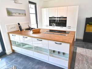Tato vila má 3 ložnice, obývací prostor, kuchyňský kout s kompletním vybavením včetně lednice a myčky nádobí a 2 koupelny. Koupelna v Villa LEVANTE in Binz - Penthouse mit Kamin, Sauna, Seeblick je zařízena vanou, sprchou a fénem.