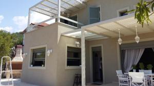 Offering panoramic views over the Ionian Sea, this split-level villa has 2 bedrooms, a living room, a dining area for 6 people, and a fully equipped kitchen with a dishwasher, an oven and a microwave. The modern bathroom comes with with bathrobes and slippers. A flat-screen TV, a Nespresso coffee machine and free WiFi are also offered.