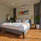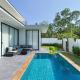 Cette villa avec climatisation comporte 3 chambres, un coin salon, une télévision et une cuisine avec un réfrigérateur.