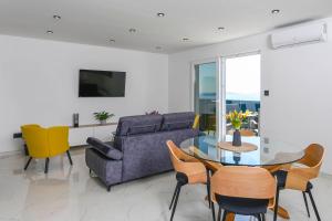 Featuring a private entrance, this holiday home is comprised of 1 living room, 2 separate bedrooms and 2 bathrooms with a bath and a shower. In the well-equipped kitchen, guests will find a stovetop, a refrigerator, a dishwasher and kitchenware. Boasting a terrace with sea views, this holiday home also offers a washing machine and a flat-screen TV. V této ubytovací jednotce je k dispozici 2 postele.