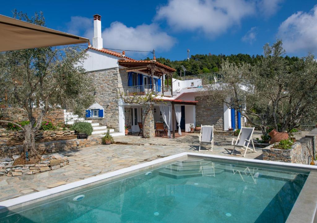 This holiday home features a pool with a view and a fireplace. Boasting a private entrance, this spacious holiday home also features 2 bedrooms, a seating area and 2 bathrooms with a shower and a hairdryer. Guests will find a stovetop, a refrigerator, a dishwasher and kitchenware in the fully equipped kitchen. The holiday home also comes with a barbecue. The air-conditioned holiday home features a flat-screen TV, a washing machine, soundproof walls, a tea and coffee maker as well as sea views. The unit has 4 beds.
