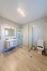 Questa villa con aria condizionata comprende 3 camere da letto, un soggiorno, una cucina con utensili, frigorifero e bollitore elettrico, e 2 bagni con doccia e asciugacapelli. Lenzuola e asciugamani sono forniti presso Villa Nontas Ntina with Private Pool & Playground.