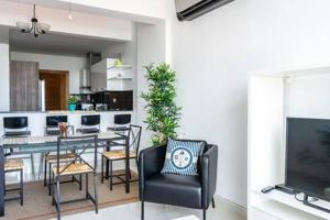El apartamento ofrece una terraza y vistas a la ciudad e incluye 2 dormitorios, sala de estar, TV de pantalla plana por cable, cocina equipada y 2 baños con ducha y bañera.