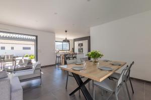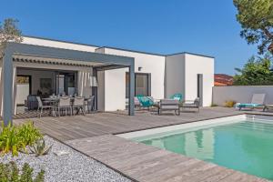 Guests will have a special experience as the holiday home offers a private pool. Featuring a private entrance, this spacious holiday home also consists of 3 bedrooms, a seating area and 2 bathrooms with a walk-in shower and a hairdryer. Guests will find a stovetop, a refrigerator, a dishwasher and kitchenware in the fully equipped kitchen. The holiday home also offers a barbecue. Boasting a terrace with garden views, this holiday home also provides a washing machine and a flat-screen TV. V této ubytovací jednotce je k dispozici 3 postele.