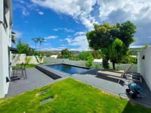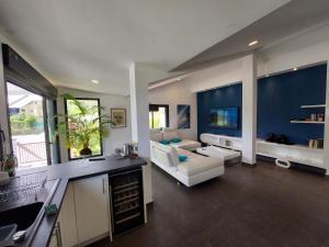 Guests will have a special experience as the villa offers a pool with a view. Featuring a private entrance, this air-conditioned villa consists of a kitchen, 3 bedrooms and 3 bathrooms with a walk-in shower and a hairdryer. Guests will find a stovetop, a refrigerator, a dishwasher and an oven in the kitchen. The villa also offers a barbecue. Boasting a terrace with garden views, this villa also provides a washing machine and a flat-screen TV with streaming services. V této ubytovací jednotce je k dispozici 3 postele.