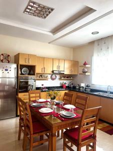 Tento prázdninový dům s klimatizací má 2 ložnice, obývací prostor, kuchyň s kompletním vybavením včetně lednice a 2 koupelny. V koupelně ubytování Villa près de la mer, sidi rahal route de dar bouazza nechybí sprcha ani fén.