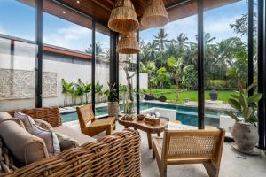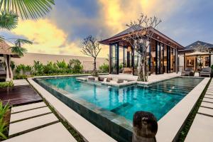 The spacious villa features 2 separate bedrooms, 2 bathrooms, a fully equipped kitchen with a dining area and oven, and 2 living rooms with a flat-screen TV. The villa at Villa Reva by BaliSuperHost offers bed linen, towels, and housekeeping service.