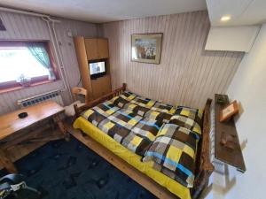 Features a mountain view, a cable TV and an equipped kitchenette. A bathroom is included.