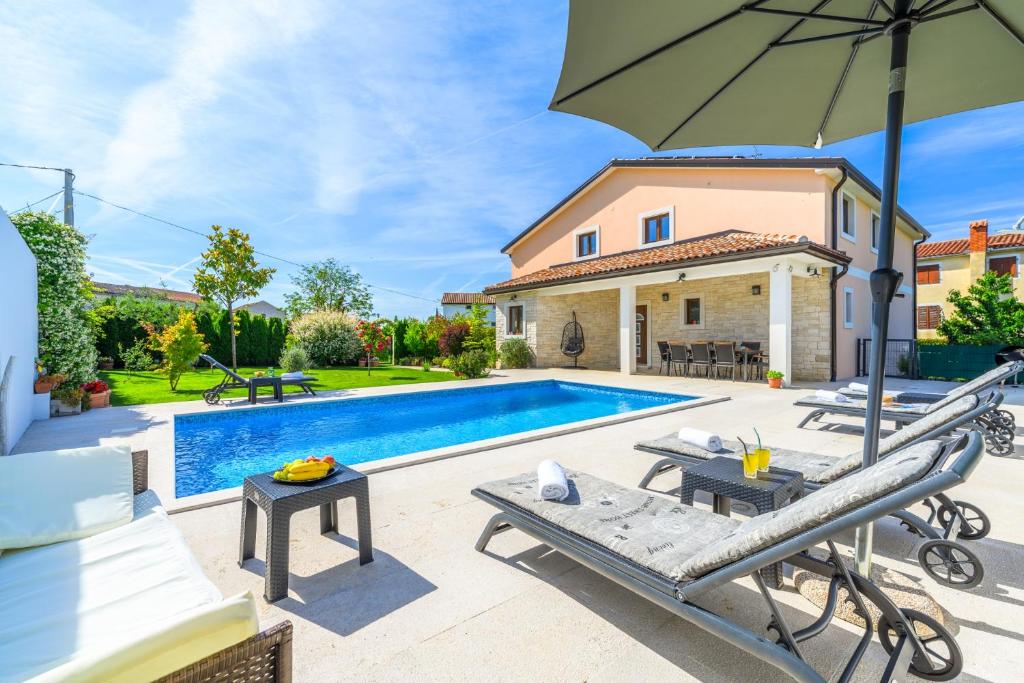 This villa's special feature is the private pool. Featuring a private entrance, this air-conditioned villa comprises 1 living room, 3 separate bedrooms and 2 bathrooms with a bath and a shower. Guests will find a stovetop, a refrigerator, a dishwasher and kitchenware in the fully equipped kitchen. The villa also provides guests with a barbecue. Boasting a terrace with garden views, this villa also provides a washing machine and a flat-screen TV with satellite channels. The unit offers 4 beds.