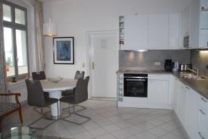 Dwupokojowy apartament Villa-Schering-App-EG-links oferuje łazienkę z prysznicem oraz kuchnię z lodówką i zmywarką. W obiekcie Villa-Schering-App-EG-links znajduje się pralka i telewizor z kablówką.