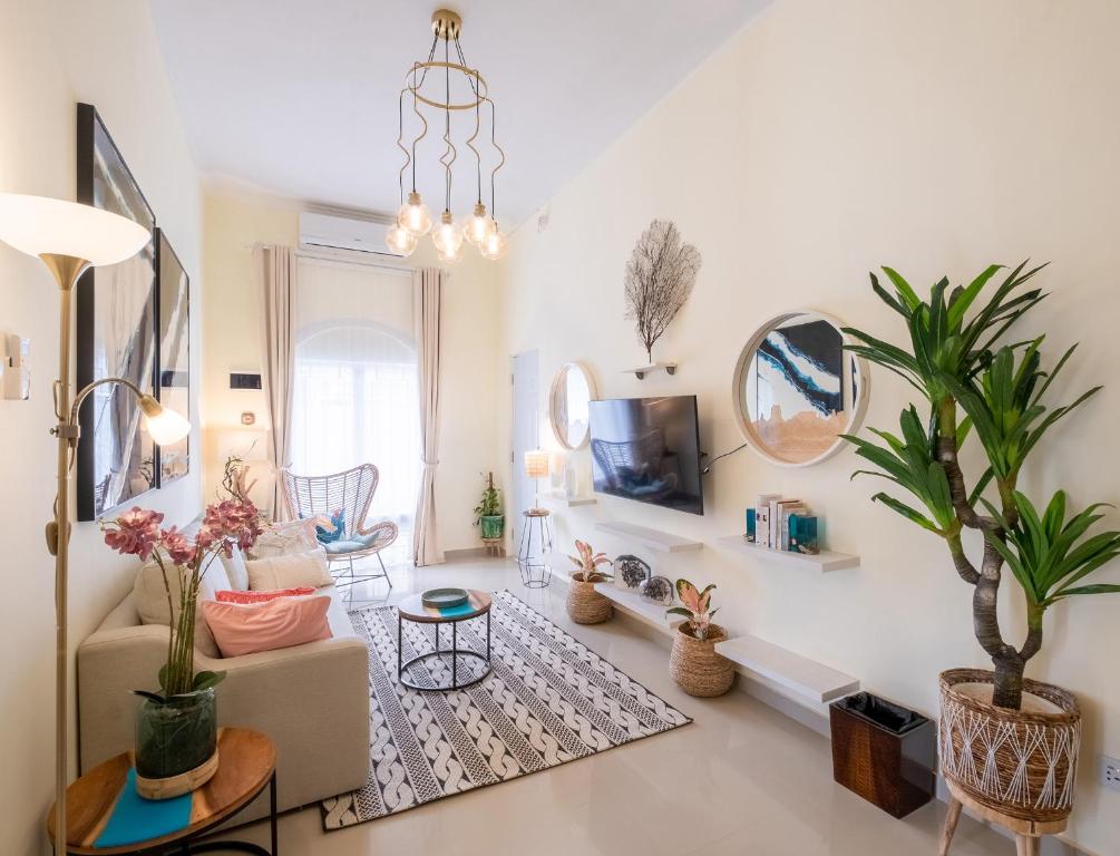 Featuring a private entrance, this air-conditioned holiday home consists of 1 living room, 2 separate bedrooms and 3 bathrooms with a bath and a shower. Meals can be prepared in the kitchen, which is equipped with a stovetop, a refrigerator, a dishwasher and kitchenware. Boasting a terrace with garden views, this holiday home also provides a washing machine and a flat-screen TV. The unit offers 3 beds.