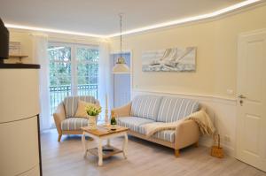 Apartmán Villa Strandblick 5 nabízí 2 ložnice, 1 koupelnu, plně vybavenou kuchyň s jídelním koutem a lednicí a obývací část s TV s plochou obrazovkou. Koupelna v ubytování je zařízena vanou, sprchou a fénem.