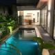 Villa Teduh Canggu se nachází v destinaci Dalung a nabízí terasu a výhled na bazén. Terminal Bus Ubung (Zastávka autobusů) se nachází 8,9 km odtud a Bali Museum 11 km. Klimatizované ubytování ubytování nabízí bezplatné Wi-Fi připojení a soukromé parkování. Petitenget Temple se nachází 8,7 km odtud.