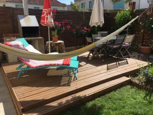 Boasting a private entrance, this air-conditioned apartment features 1 living room, 1 separate bedroom and 1 bathroom with a bath and a hairdryer. Guests will find a stovetop, a refrigerator, a dishwasher and kitchenware in the kitchen. The apartment also comes with a barbecue. Featuring a terrace with garden views, this apartment also features a washing machine and a flat-screen TV. V této ubytovací jednotce se nachází 2 postele.