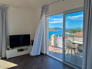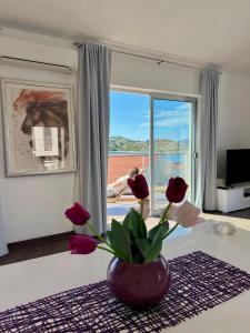 Boasting a private entrance, this air-conditioned apartment features 1 living room, 2 separate bedrooms and 1 bathroom with a shower and a hairdryer. In the fully equipped kitchen, guests will find a stovetop, a refrigerator, a dishwasher and kitchenware. The spacious apartment features a tea and coffee maker, a seating area, a dining area as well as a terrace with sea views. V této ubytovací jednotce se nachází 3 postele.