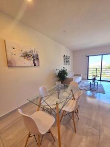 The spacious apartment is equipped with 2 bedrooms, 2 bathrooms, bed linen, towels, a flat-screen TV, a dining area, a fully equipped kitchen, and a terrace with sea views. Guests at the property can enjoy mountain views from the balcony, which is furnished with outdoor furniture. For added privacy, the property features a private entrance and full-day security.
