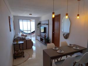 The apartment is equipped with 1 bedroom, 1 bathroom, bed linen, towels, a flat-screen TV with streaming services, a dining area, a fully equipped kitchen, and a balcony with sea views. Vista Mar e Conforto Completo! is allergy-free and non-smoking.