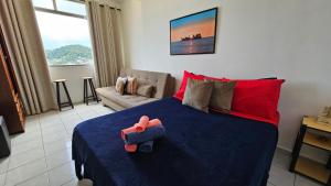 Este apartamento de un dormitorio en Vista para o Mar - Praia Gonzaguinha dispone de cocina completa y sala de estar con TV de pantalla plana.