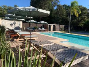 This holiday home's special features are the pool with a view and the fireplace. Boasting a private entrance, this air-conditioned holiday home features 1 living room, 2 separate bedrooms and 2 bathrooms with a shower and a bidet. Guests will find a stovetop, a refrigerator, kitchenware and an oven in the kitchen. The holiday home also comes with a barbecue. Featuring a balcony with garden views, this holiday home also features a washing machine and a flat-screen TV with cable channels. The unit is furnished with 3 beds.