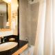 A flat-screen TV with cable channels and a refrigerator are featured in each room. The en suite bathroom includes a walk-in shower, plush bathrobes and a hairdryer.