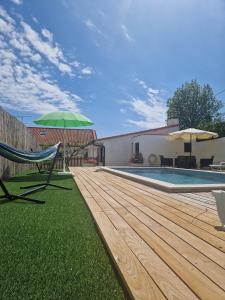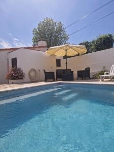 The holiday home with a terrace and pool views features 4 bedrooms, a living room, a flat-screen TV, an equipped kitchen with a dishwasher and an oven, and 2 bathrooms with a walk-in shower. Towels and bed linen are featured in the holiday home at the property. Vivenda do Calvario includes an outdoor dining area.