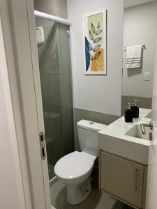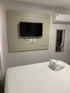 Apartmán Vivendas do Mar - home e service zahrnuje 1 ložnici, TV s plochou obrazovkou a kuchyň.