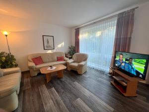 The 3-bedroom holiday home is fitted with a living room with a TV with cable channels, a fully equipped kitchenette with a dishwasher and oven, and 1 bathroom with shower. Voßhörn 19 a is allergy-free and non-smoking.