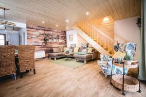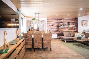 The holiday home with a terrace and garden views has 2 bedrooms, a living room, a flat-screen TV, an equipped kitchen with a dishwasher and an oven, and 2 bathrooms with a shower. Guests at the property can enjoy the surroundings from the outdoor dining area or stay warm by the fireplace on colder days. For added privacy, Waldstück features a private entrance.