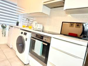 This apartment consists of 1 living room, 1 separate bedroom and 1 bathroom with a shower and a hairdryer. The well-fitted kitchen has a stovetop, a refrigerator, kitchenware and an oven. The apartment features carpeted floors, a seating area with a flat-screen TV with streaming services, a washing machine, a tea and coffee maker, as well as a dining area. The unit provides 2 beds.