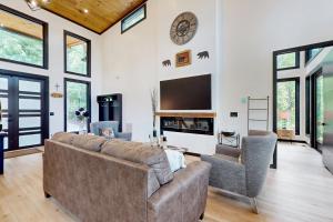 Guests will have a special experience as this holiday home features a hot tub and a fireplace. Boasting a private entrance, this spacious holiday home also features 3 bedrooms, a seating area and 3 bathrooms with a walk-in shower and a hairdryer. Guests will find a stovetop, a refrigerator, a dishwasher and kitchenware in the kitchen. The holiday home also comes with a barbecue. This air-conditioned holiday home is comprised of a dining area, a TV with streaming services a tea and coffee maker and a terrace. The unit has 4 beds.