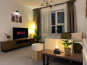 Featuring a private entrance, this apartment is comprised of 1 living room, 1 separate bedroom and 1 bathroom with a bath and a shower. In the kitchen, guests will find a stovetop, a refrigerator, a dishwasher and kitchenware. The apartment features carpeted floors, a seating area with a flat-screen TV, a washing machine, a dining area as well as an inner courtyard view. The unit offers 2 beds.