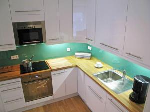Apartmán Warnemünde Becker 52120 nabízí 1 ložnici, 1 koupelnu, plně vybavenou kuchyň s jídelním koutem a lednicí a obývací část s TV s plochou obrazovkou. V koupelně ubytování Warnemünde Becker 52120 nechybí sprcha ani fén.