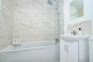 Questo appartamento presenta 1 camera da letto, un soggiorno e una cucina con utensili, frigorifero e forno. Presso Watford Central Queens Apartment è disponibile una TV a schermo piatto.