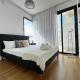 Apartmán Wealthystays Premium Residence nabízí 3 ložnice, 2 koupelny, ložní prádlo, ručníky, TV s plochou obrazovkou, jídelní kout a plně vybavenou kuchyň. Z balkonu ubytování ubytování se nabízí výhled na město. Koupelna v Wealthystays Premium Residence disponuje sprchou, pračkou, fénem a toaletními potřebami zdarma.