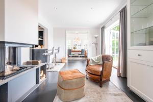 This holiday home's standout feature is the fireplace. Boasting a private entrance, this spacious holiday home also includes 2 bedrooms, a seating area and 1 bathroom with a bath and a shower. In the fully equipped kitchen, guests will find a stovetop, a refrigerator, a dishwasher and kitchenware. Featuring a terrace with garden views, this holiday home also offers a washing machine and a TV. V této ubytovací jednotce se nachází 2 postele.