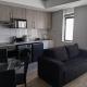 Questo appartamento con balcone e vista sulla città offre 1 camera da letto, un soggiorno, una TV a schermo piatto, un angolo cottura con frigorifero e lavastoviglie e 1 bagno con doccia.
