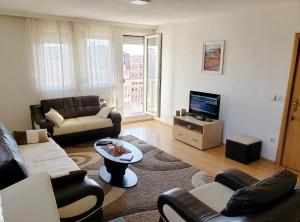 This apartment features a fireplace. Boasting a private entrance, this air-conditioned apartment features 1 living room, 1 separate bedroom and 1 bathroom with a walk-in shower and a bath. In the kitchen, guests will find a stovetop, a refrigerator, kitchenware and an oven. The spacious apartment features a flat-screen TV with cable channels, a washing machine, a tea and coffee maker, a seating area as well as city views. The unit has 3 beds.