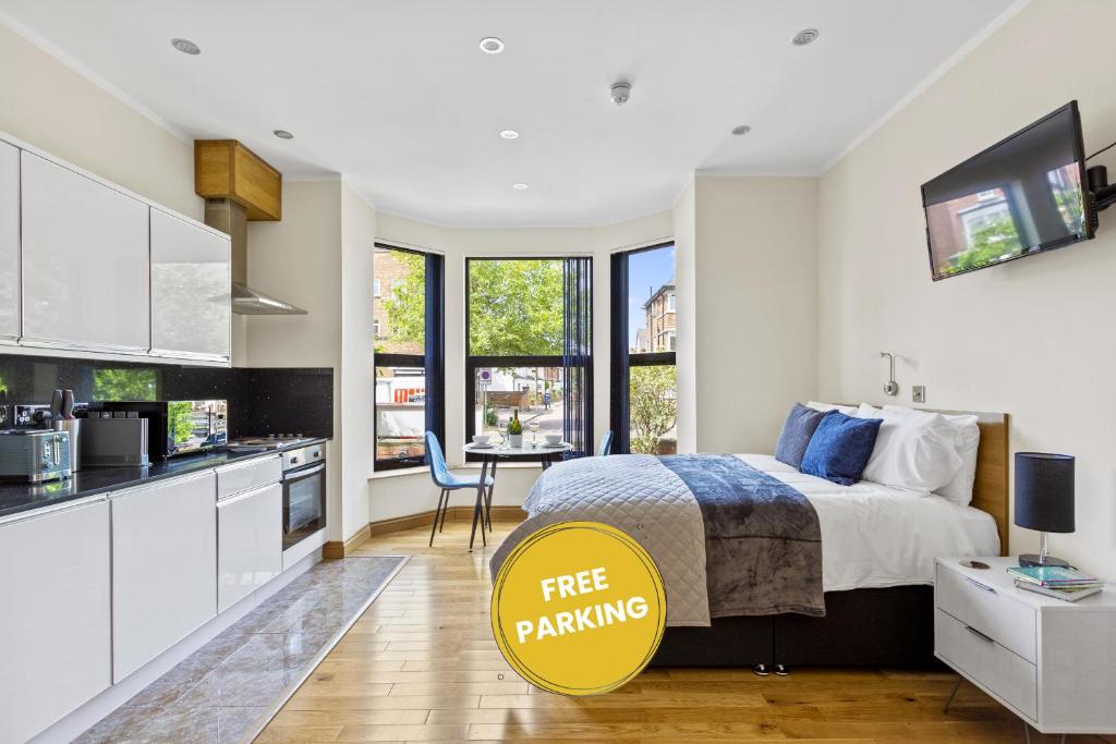 V ubytování West One Studios je k dispozici TV s plochou obrazovkou, vlastní koupelna a plně vybavená kuchyň s lednicí. K dispozici je také trouba, mikrovlnná trouba, toustovač a varná konvice.