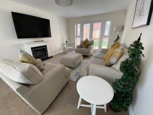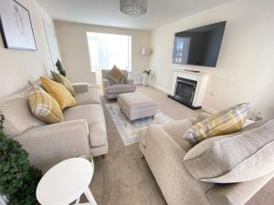 Guests will have a special experience as this holiday home offers a fireplace. Featuring a private entrance, this holiday home also is comprised of 4 bedrooms, a seating area and 3 bathrooms with a bath and a shower. The fully equipped kitchen has a stovetop, a refrigerator, a dishwasher and kitchenware. This holiday home features a washing machine, soundproof walls, a flat-screen TV with satellite channels and a terrace. The unit offers 5 beds.