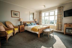 Spacious room over looking the front garden with king sleigh bed, fridge TV hot and cold drinks, sofa and large ensuite with 1400x1000 no door rain forest power shower.