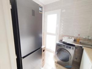 The well-fitted kitchen features a refrigerator, kitchenware, an oven and a microwave. The spacious air-conditioned apartment offers a flat-screen TV with streaming services, a washing machine, a seating area, a dining area as well as a quiet street view. The unit offers 3 beds.