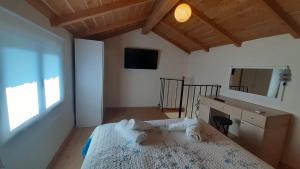 This holiday home features a hot tub. Featuring a private entrance, this air-conditioned holiday home comprises 1 living room, 1 separate bedroom and 1 bathroom with a bath and a hairdryer. The kitchen comes with a refrigerator, kitchenware and an oven. Boasting a terrace with garden views, this holiday home also provides a tea and coffee maker and a flat-screen TV. The unit offers 2 beds.