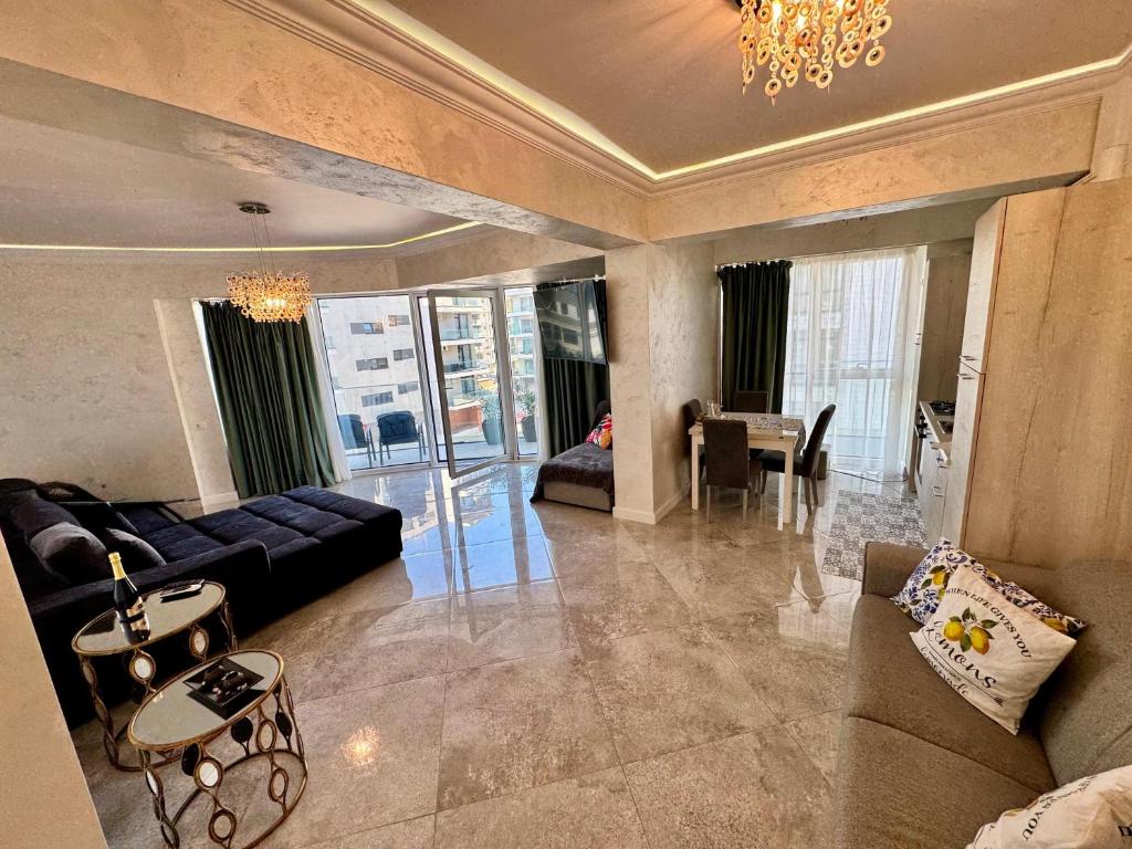 The fully equipped kitchen has a stovetop, a refrigerator and kitchenware. The spacious air-conditioned apartment features a flat-screen TV, soundproof walls, a tea and coffee maker, a dining area as well as sea views. The unit has 3 beds.