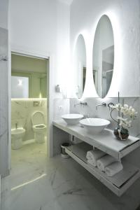 The Brigitte room features a bathroom with shower in the centre of the bedroom. It features a 40-inch flat-screen TV and minibar.