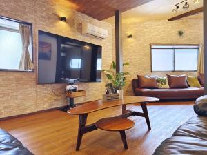 Boasting a private entrance, this air-conditioned villa comes with 1 living room, 2 separate bedrooms and 1 bathroom with a bath and a shower. Guests can make meals in the kitchen that features a stovetop, a refrigerator, kitchenware and a microwave. The villa features a washing machine, tatami, a dining area, an electric kettle, as well as a flat-screen TV with cable channels. The unit has 5 beds and 4 futons.