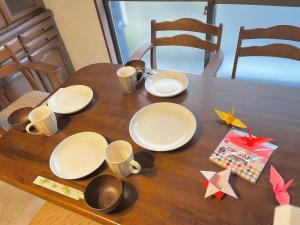 The hot tub is a top feature of this holiday home. The holiday home features air conditioning, a washing machine, as well as a shared bathroom boasting a bath and a shower. The well-equipped kitchen has a stovetop, a refrigerator, kitchenware and a microwave. The holiday home offers tatami, a private entrance, a dining area along with a balcony. The unit has 3 beds and 2 futons.