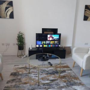 El apartamento de 1 dormitorio dispone de sala de estar con TV, cocina totalmente equipada con nevera y horno, y 1 baño con bañera o ducha. El apartamento Wigan - Apartment - Sleeps 3 - Parking - Stadium dispone de toallas y ropa de cama.