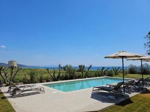 This villa boasts a pool with a view and a fireplace. This spacious villa consists of 1 living room, 5 separate bedrooms and 5 bathrooms with a shower and free toiletries. Guests will find a stovetop, a refrigerator, a dishwasher and kitchenware in the kitchen. The villa also offers a barbecue. The air-conditioned villa provides a flat-screen TV with streaming services, a washing machine, a private entrance, a tea and coffee maker as well as sea views. The unit offers 8 beds.