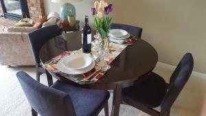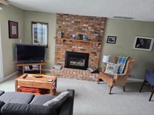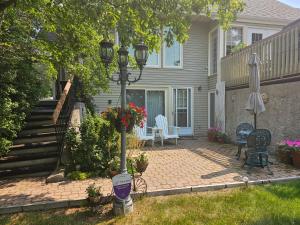 A kitchen is featured in this self contained suite. Free WiFi, a flat-screen satellite TV and a fireplace are provided. The entire house has added a heat pump for heating and cooling. The suite has its own in-floor heating system and controls. An outdoor terrace offers garden views.