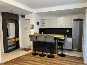 - Small kitchen area,